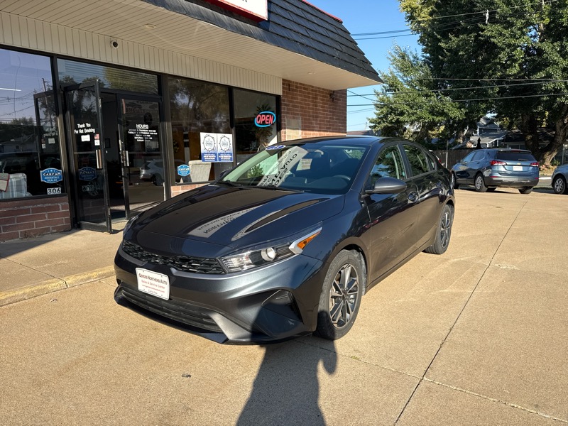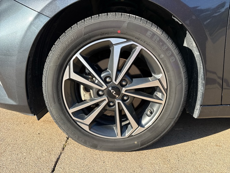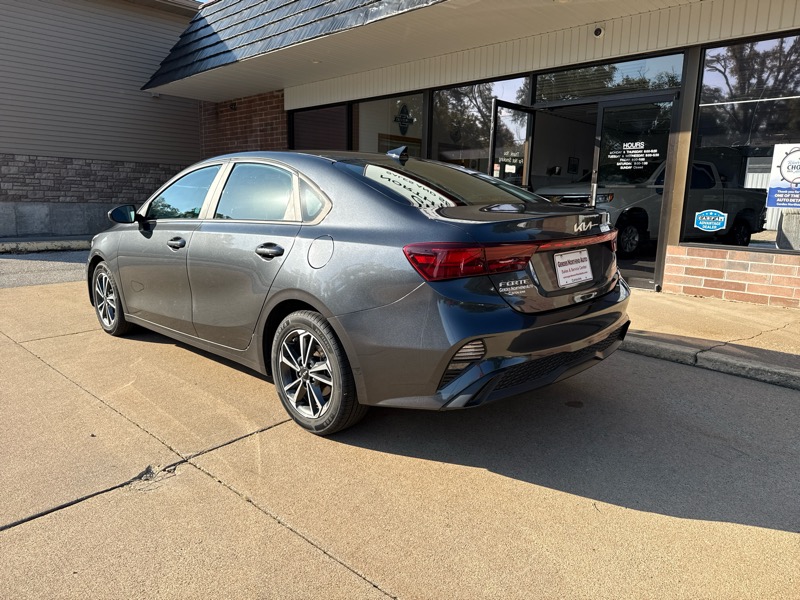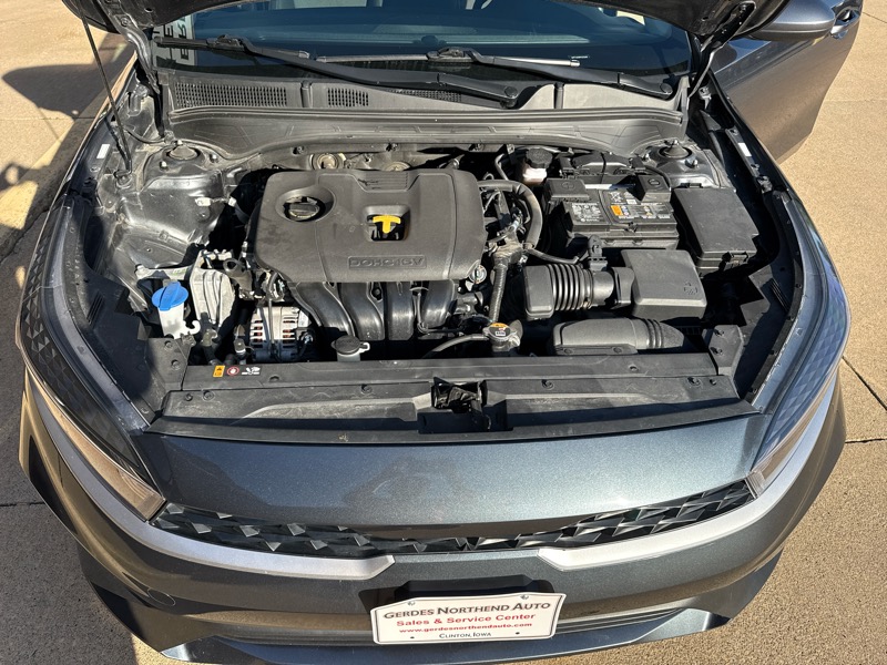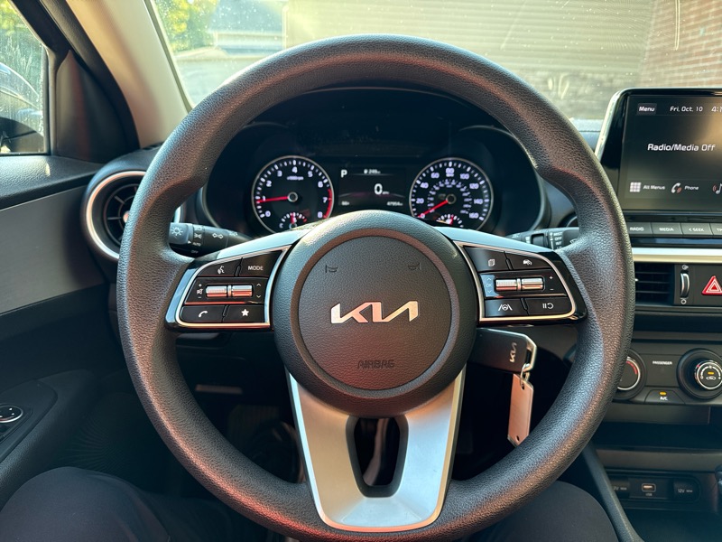 2023 Kia Forte LXS, 2.0L 4-cylinder engine, Intelligent Variable Transmission (IVT), front-wheel drive, Drive Mode Select, 16" alloy wheels, projector headlights with auto on/off, 8" touchscreen display, Apple CarPlay & Android Auto, Bluetooth wireless technology, rearview camera with dynamic guidelines, steering wheel audio, cruise & phone controls, remote keyless entry with trunk opener, 60/40 split-folding rear seat, cloth interior, manual front seat adjustments, tilt/telescopic steering column, dual front advanced airbags, side curtain airbags, Forward Collision-Avoidance Assist (pedestrian), Lane Keeping Assist, Lane Following Assist, Lane Departure Warning, Driver Attention Warning, High Beam Assist, electronic stability control, vehicle stability management, hill-start assist, anti-lock braking system, tire pressure monitoring system, and rear occupant alert.